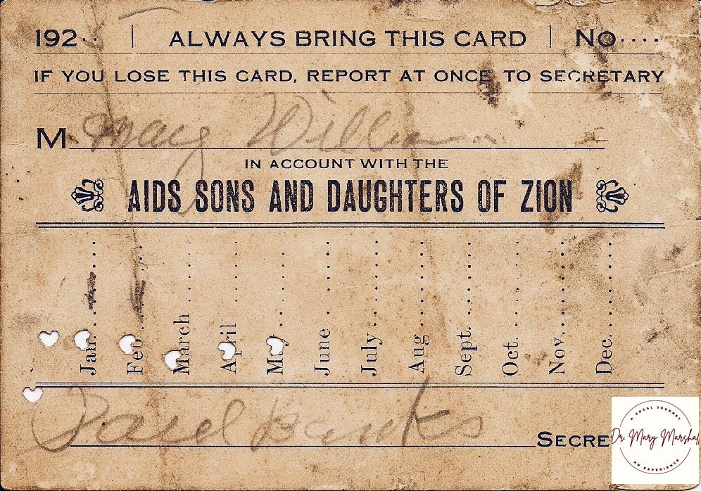 Great grandmother Mary was a member of Aids Sons And Daughters of Zion.